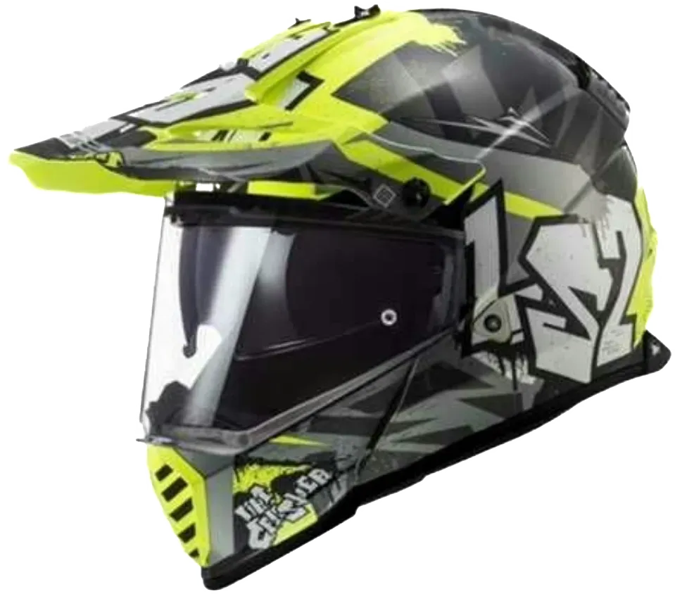 CASCO DOBLE PROPÓSITO LS2 MX436 PIONEER EVO CRUSHER BLACK HI-VIS YELLOW