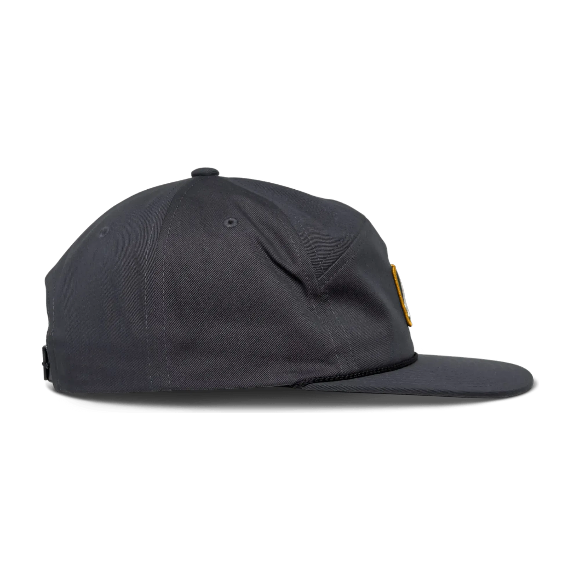 - Parche frontal tejido con logotipo, logotipo lateral plano bordado. Ribete de cuerda en la visera.