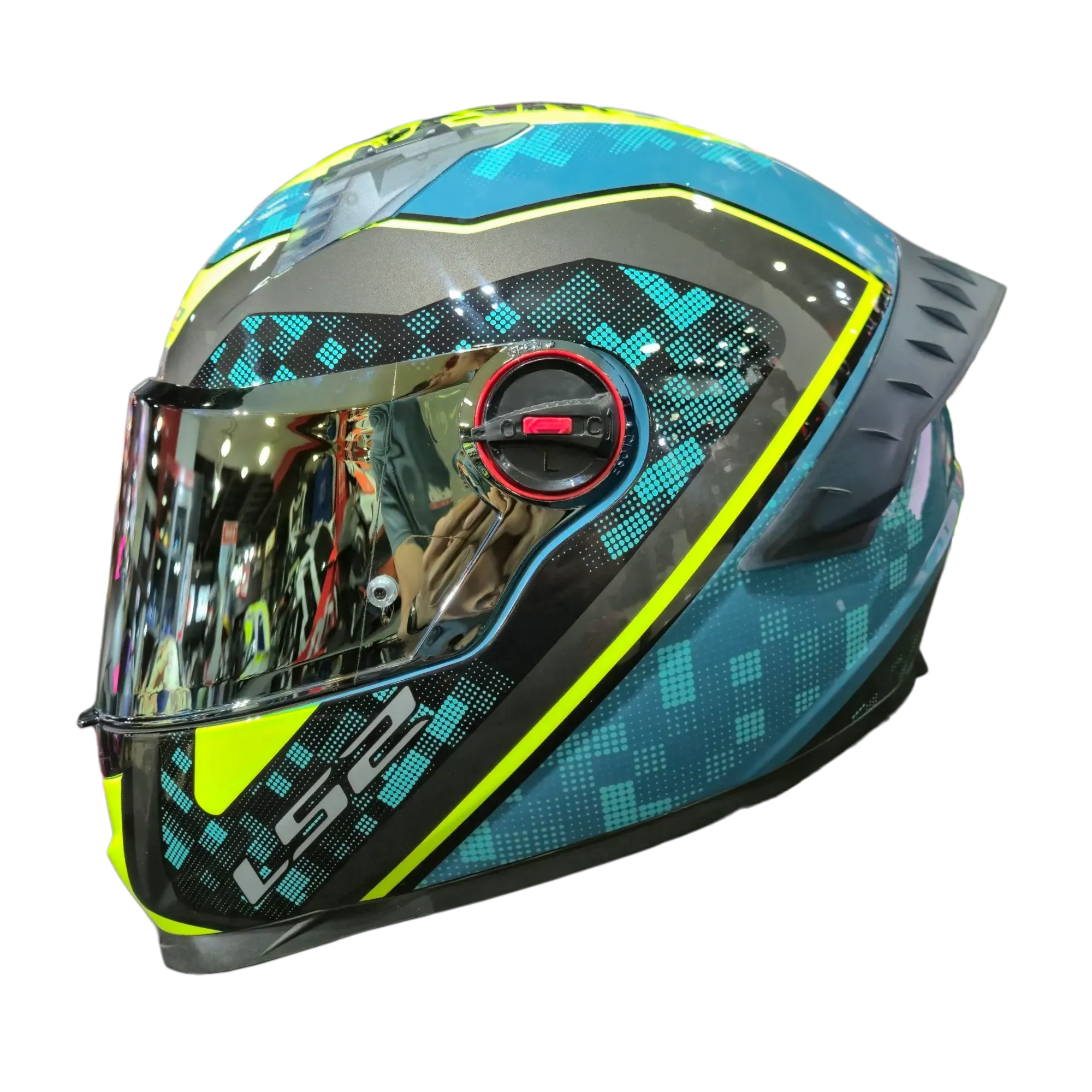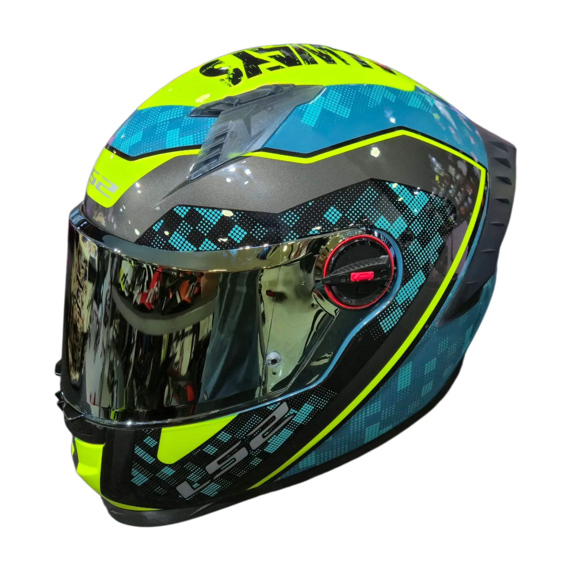CASCO INTEGRAL LS2 FF816 COSMOS STRIKE BLUE HI-VIS YELLOW - IRIDIUM GOLD VISOR