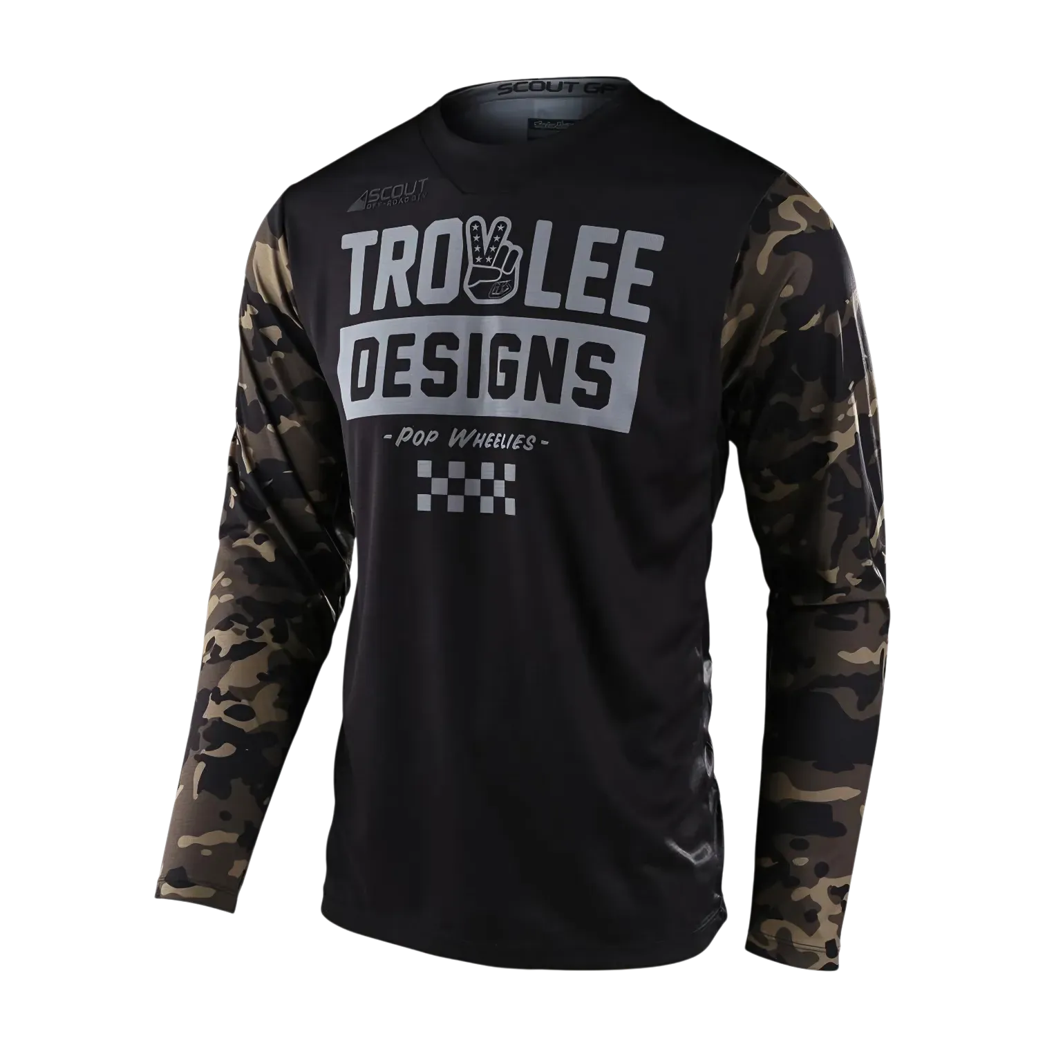 JERSEY TLD SCOUT GP PEACE & WHEELIES CAMO GREEN