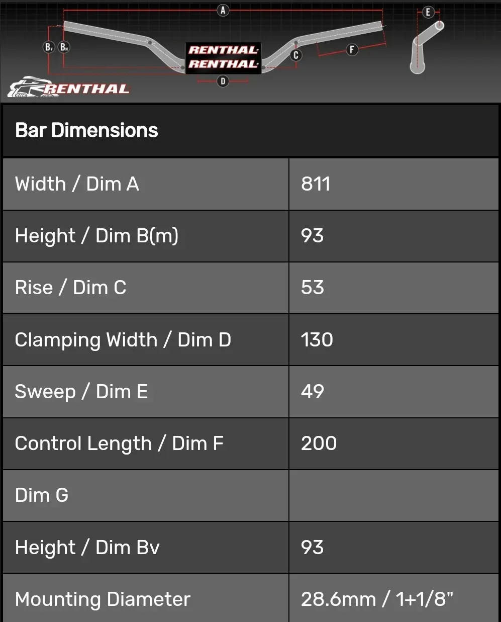 TIMON 1 1/8" RENTHAL TWINWALL 996-01-RD-07-185